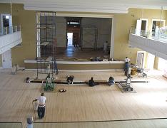 The original wood floors are nearly fully restored, the restored pressed metal ceiling is now completely repaired and painted, and the rehabilitated wooden mezzanine chairs are set to be installed the week of May 19. A new glass rail was recently installed at mezzanine level for code and safety reasons. The exterior rehabilitation of the building is nearing completion as well. The finish-out of the basement as a prep space for performers is the major work item still awaiting completion. The building is set to open to the public in late summer/early fall 2008.