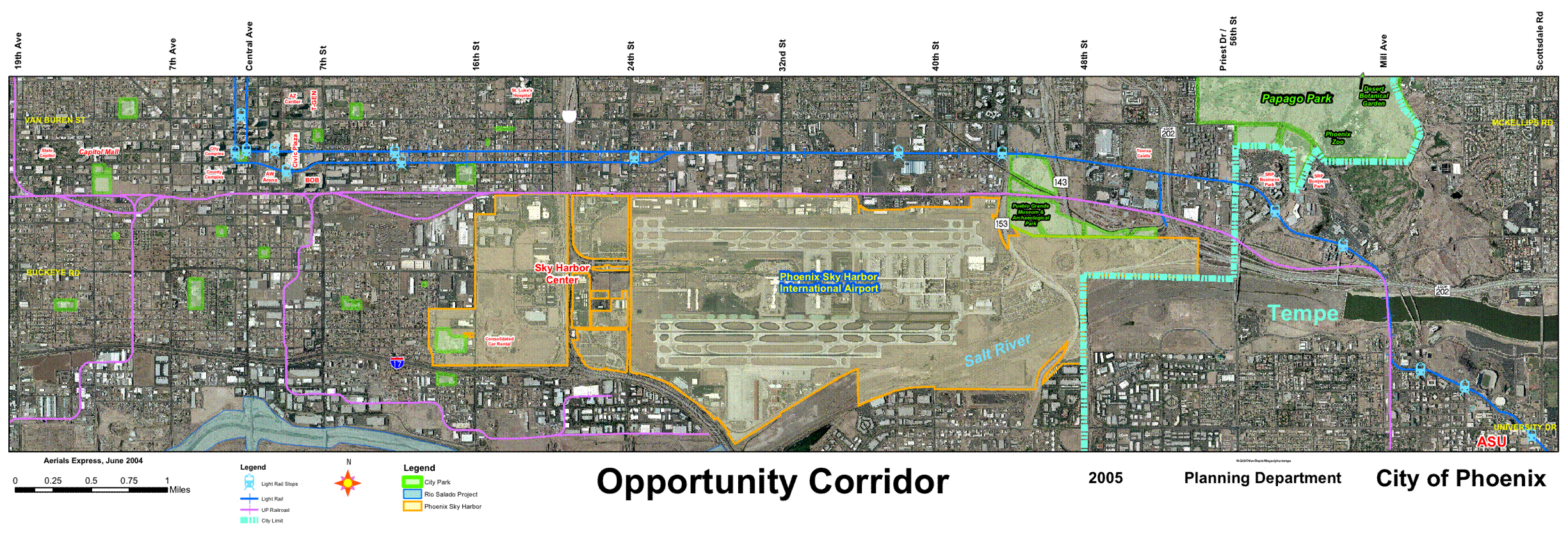 [Source: Mike Sunnucks, Phoenix Business Journal] — Four years ago, Phoenix Mayor Phil Gordon announced he wanted to rehabilitate run-down areas along the 12-mile stretch from the Arizona Capitol through downtown Phoenix to Arizona State University in Tempe. Dubbed the Opportunity Corridor, it was to be filled with new office, residential, biomedical, and industrial developments. Today, inopportune times have stalled those plans.