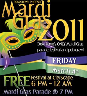 - Advance tickets can be purchased online at www.downtownphoenix.com/mardigras.