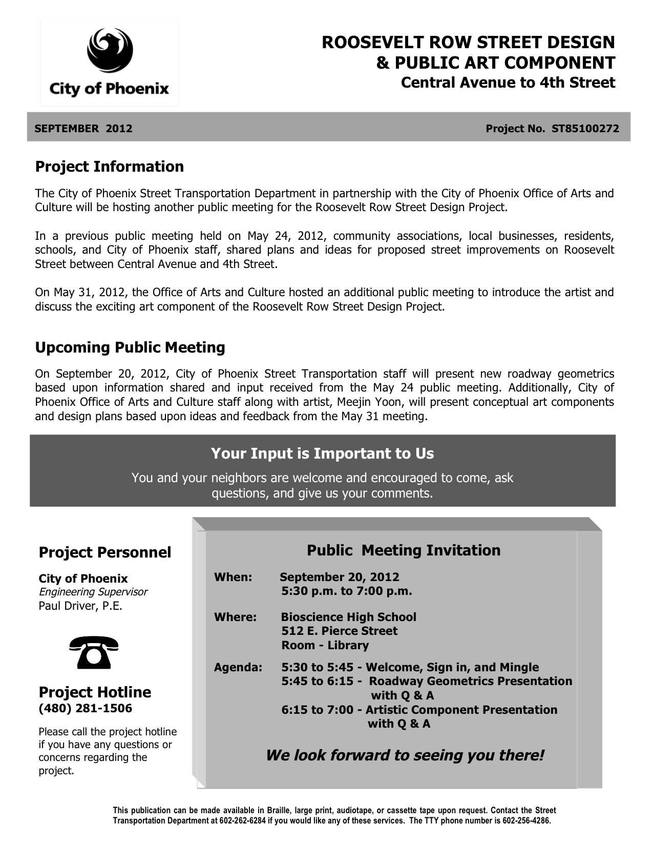 Posted on September 13, 2012 Roosevelt Row Street Design & Public Art Meeting, Sept. 20 Share this: Click to share on Facebook (Opens in new window) Facebook Click to share on X (Opens in new window) X Like Loading... Related